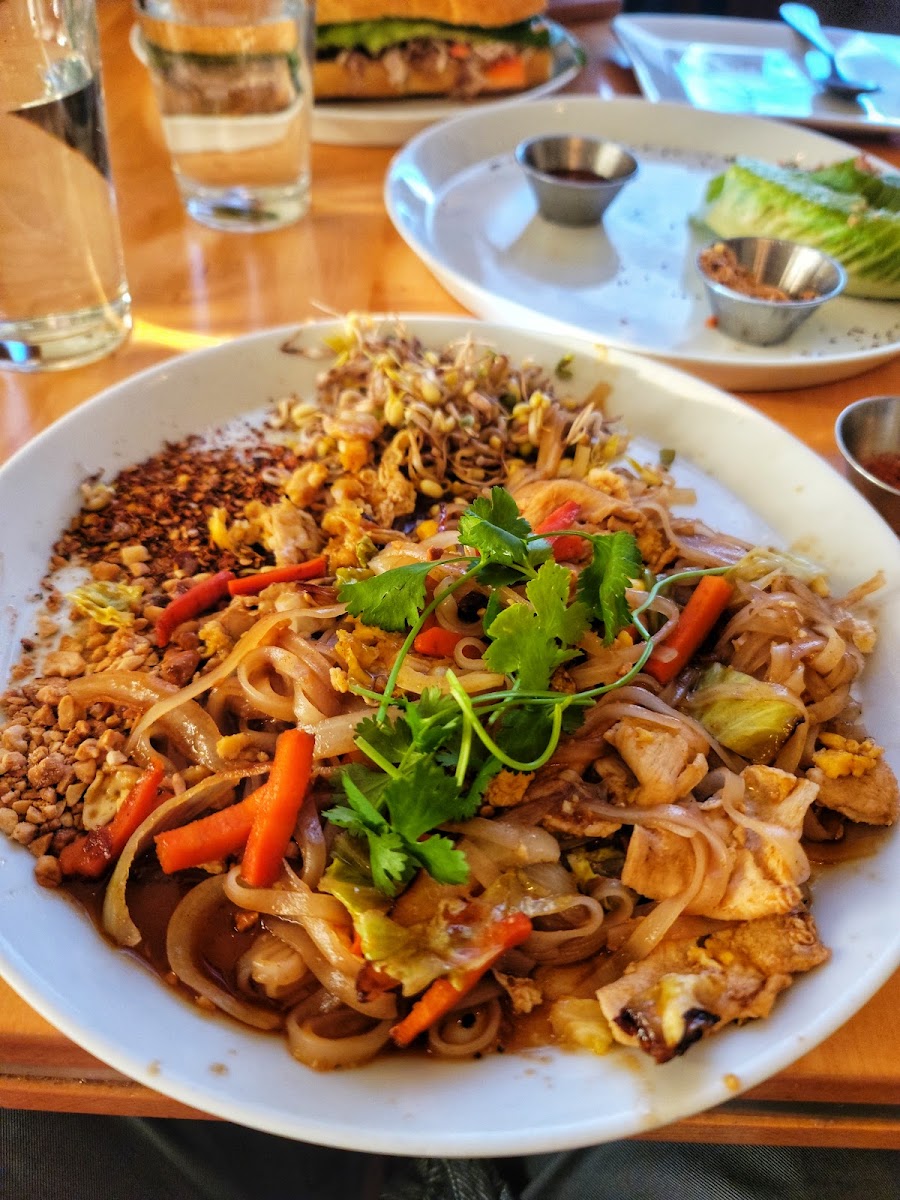The menu showcases familiar favorites with a twist — dishes like pho with rare sirloin, pot stickers, and pad Thai sit comfortably alongside hearty American-style sandwiches such as the rib eye burger and ham & French cheese baguette. The food leans toward fresh, homemade preparations with an emphasis on balance; for example, the lettuce wraps come off as bright and refreshing, offering a nice counterpoint to richer plates. Sweet options like mango sticky rice provide a simple, well-executed dessert finish that complements the main dishes without overwhelming.